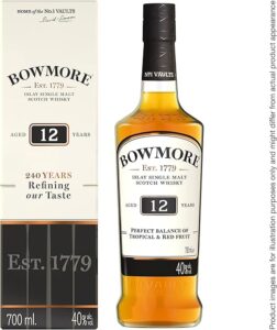 The first Islay malt, still carefully smoked in a peat-fired kiln, Bowmore is widely acknowledged to be among the finest, most distinctly balance single malts in the world.